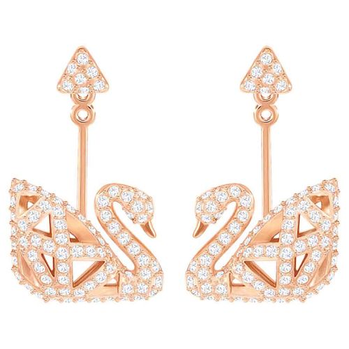 Khuyên tai thiên nga Swarovski màu vàng hồng đeo 2 kiểu – Swarovski Facet Swan Pierced Earrings Rose Gold-tone Plated