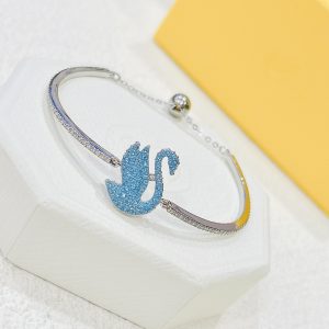 Lắc tay Swarovski thiên nga tung cánh new màu xanh biển – Swarovski Iconic Swan bangle Swan, Blue, Rhodium plated