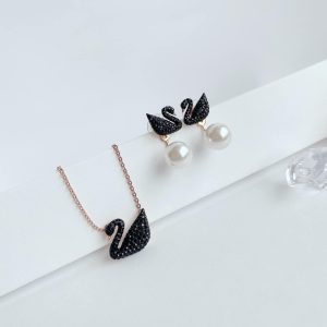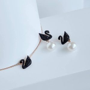 Set khuyên tai – dây chuyền thiên nga đen size to Swarovski