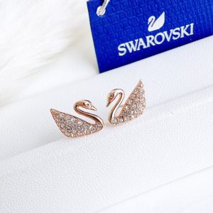Khuyên tai thiên nga Swarovski màu vàng hồng đeo 2 kiểu – Swarovski Facet Swan Pierced Earrings Rose Gold-tone Plated