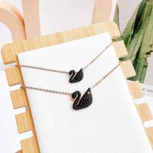 Set khuyên tai – dây chuyền thiên nga đen size bé Swarovski
